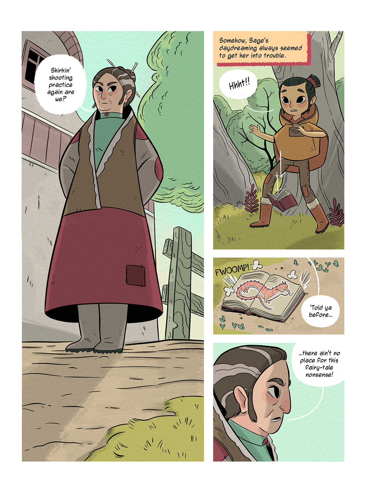 But Sage, she’s totally different. Everyone thinks she’s so odd. She’s fascinated by the amazing wildlife of the Wilder. She loves to wander and explore the forests, looking for new critters to discover. She wants to find and befriend them all! She writes and draws everything about these critters down inside her little field journal - behaviors, habits, footprints, sketches and facts about each one.